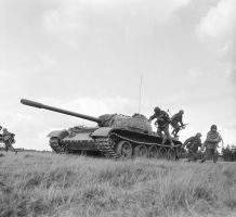 7 września 1945 roku na berlińskiej Defiladzie Zwycięstwa Armia Czerwona zaprezentowała swój najnowszy czołg IS-3. Nie był on co prawda zbyt udaną konstrukcją, ale miał bardzo groźny wygląd. Niemniej wywołał u byłych sojuszników szok i zmusił ich do intensyfikacji prac nad własnymi konstrukcjami mogącymi z nim rywalizować.